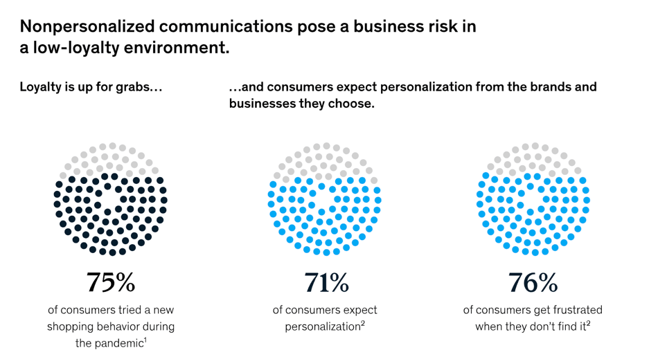 実際、マッキンゼーの調査によると、顧客の71%が「パーソナライズされた体験を期待している」と回答しており、61%が「それが欠けていると失望する」と感じています。このような顧客との信頼関係の深化は、リピート率の向上やLTV(顧客生涯価値)の増大にも直結します。