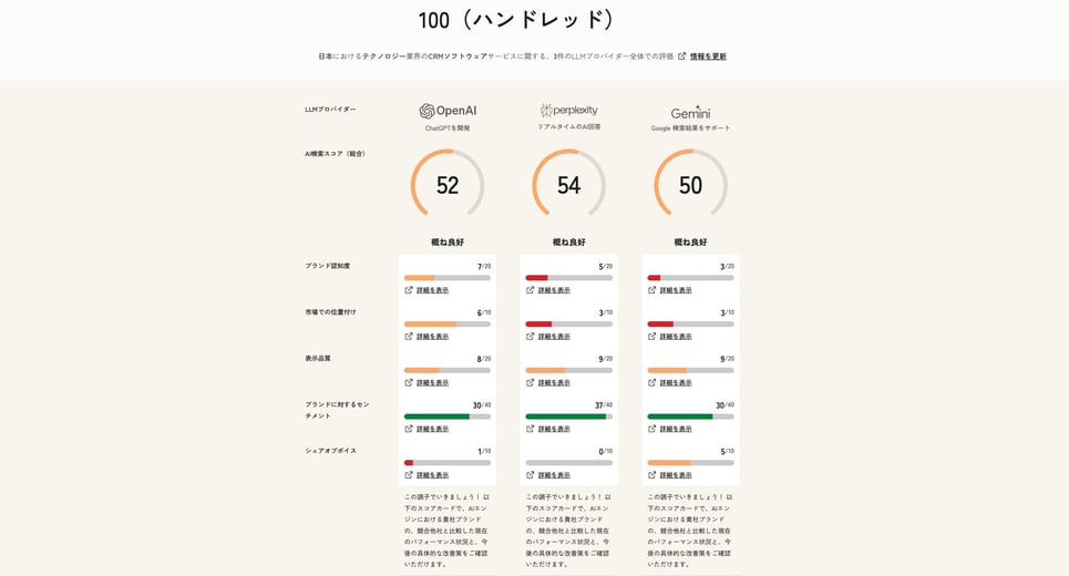 AIの回答でブランドがどのくらいの頻度で引用・言及されるか(メンション率)およびその文脈。 |