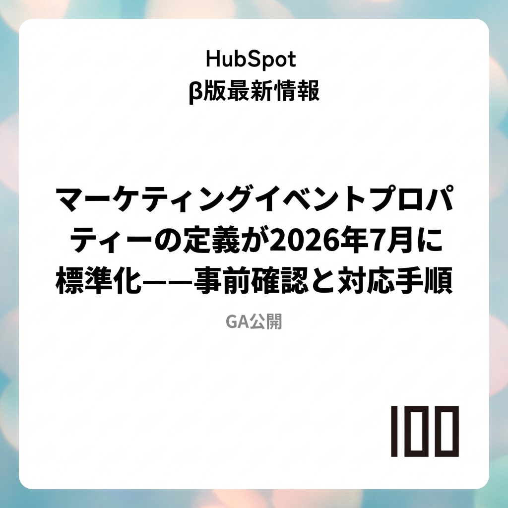 2026/04/09HubSpot HubSpotアップデート情報 HubSpotベータ版最新情報