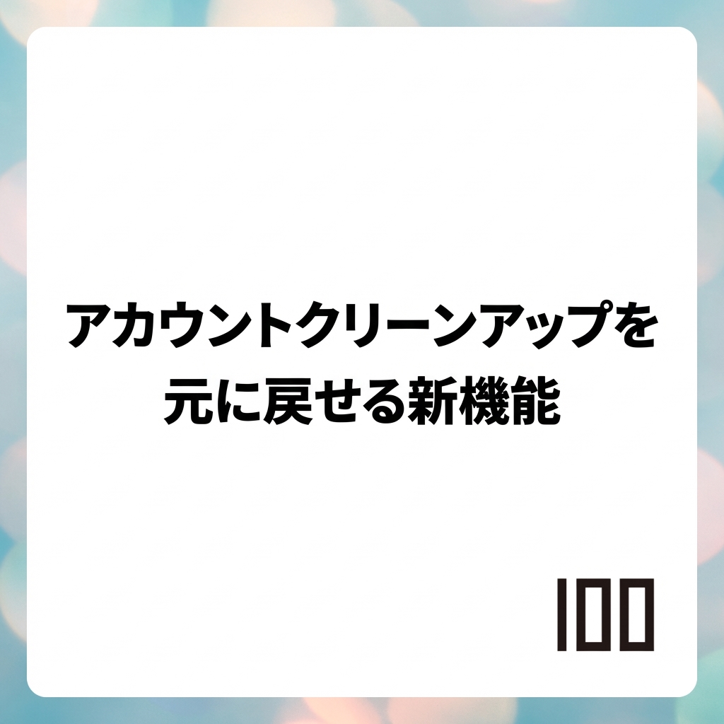 アカウントクリーンアップツールに「元に戻す」機能が追加されました。直近のクリーンアップ操作を取り消し、削除またはアーカイブされたアセットを復元するとともに、クリーンアップされた内容を正確に確認できるようになりました。