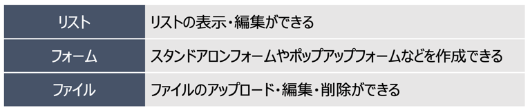 ウェブサイトツールでは、コンテンツの作成に関わる以下のツールへアクセス権を付与できます。